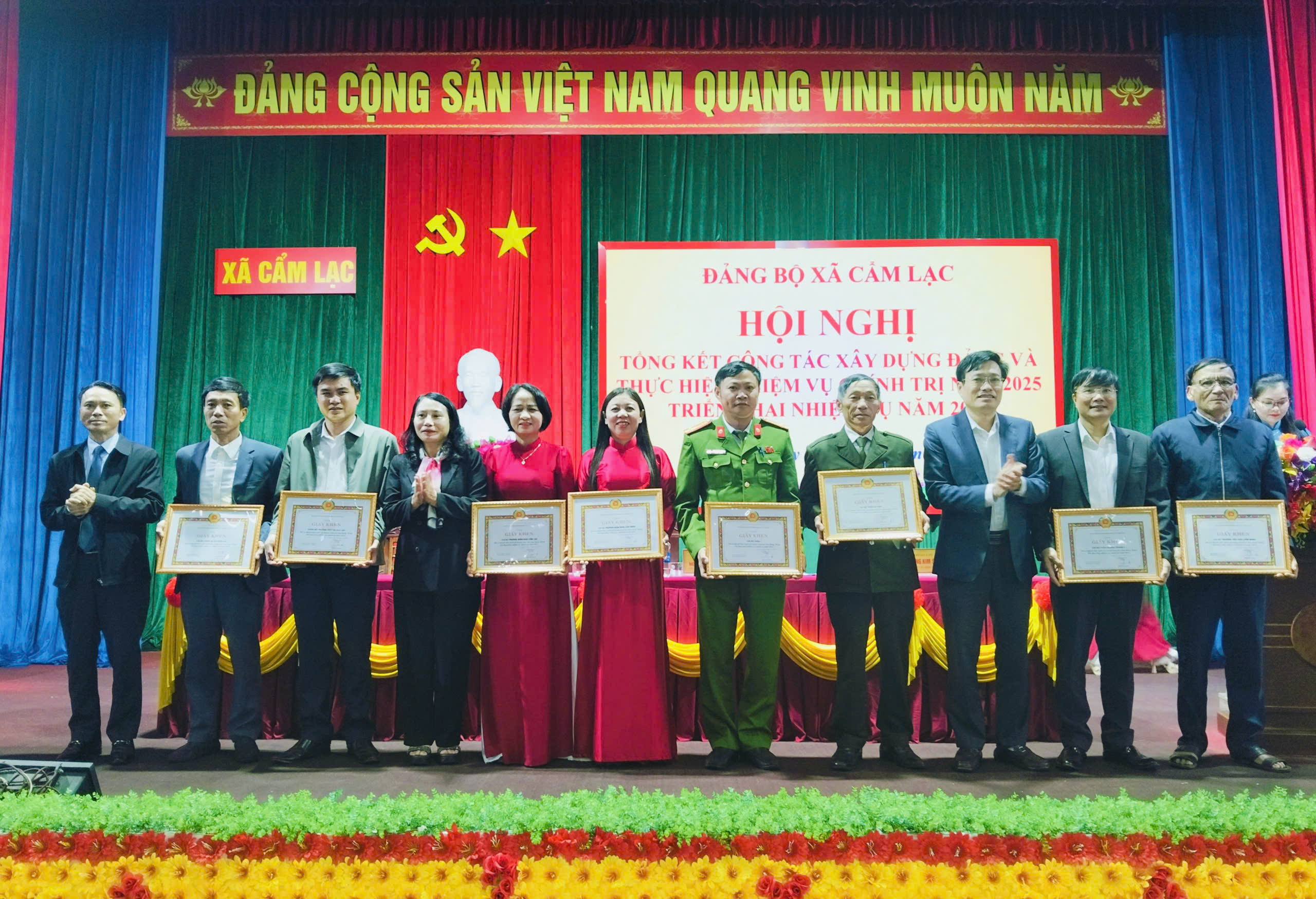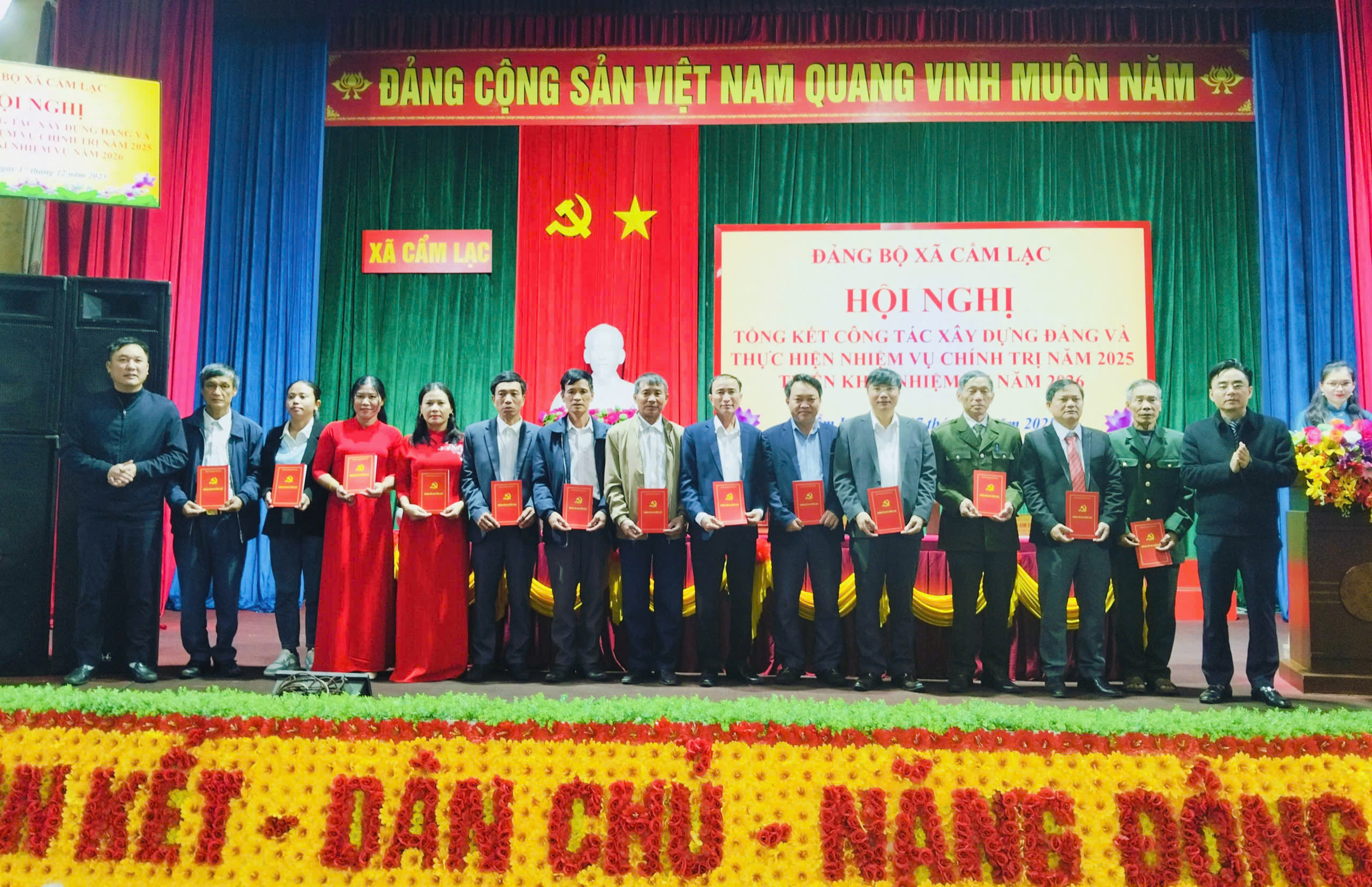 Nhân dịp này, Đảng bộ xã Cẩm Lạc đã trao thưởng cho 8 tập thể hoàn thành xuất sắc nhiệm vụ và biểu dương 40 cá nhân có thành tích xuất sắc trong công tác xây dựng Đảng và thực hiện nhiệm vụ chính trị năm 2025, tạo động lực thi đua sôi nổi trong toàn Đảng bộ./