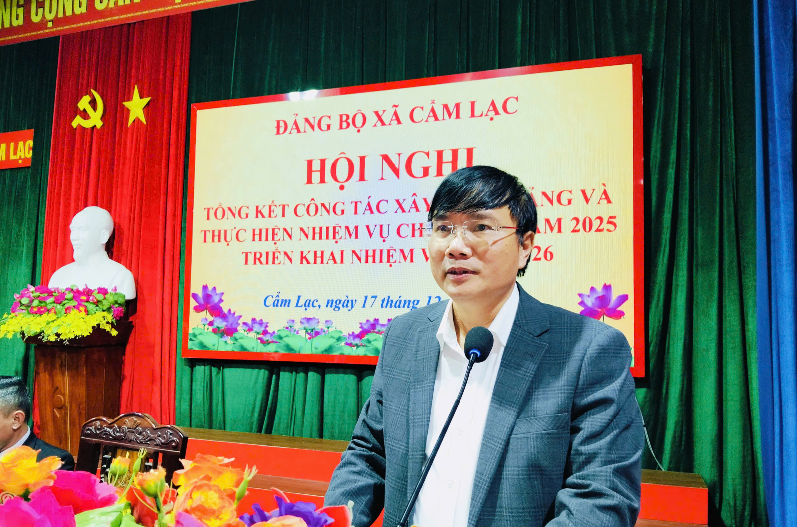 Phát biểu và kết luận hội nghị, đồng chí Biện Văn Thuyết - Bí thư Đảng ủy, Chủ tịch HĐND xã Cẩm Lạc tiếp thu đầy đủ ý kiến chỉ đạo của đồng chí Phó Trưởng ban Thường trực Ban Nội chính Tỉnh ủy8 và các ý kiến tham luận tại hội nghị. Đồng chí yêu cầu toàn Đảng bộ tiếp tục phát huy tinh thần đoàn kết, trách nhiệm, cụ thể hóa các mục tiêu, nhiệm vụ năm 2026 thành chương trình, kế hoạch sát với thực tiễn; nâng cao chất lượng công tác xây dựng Đảng, hiệu lực quản lý của chính quyền, quyết tâm hoàn thành thắng lợi các mục tiêu phát triển kinh tế – xã hội đã đề ra.