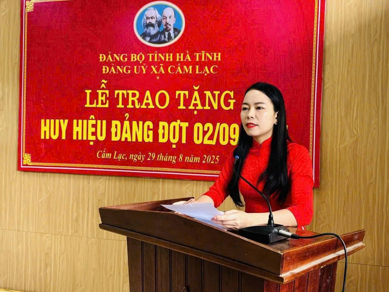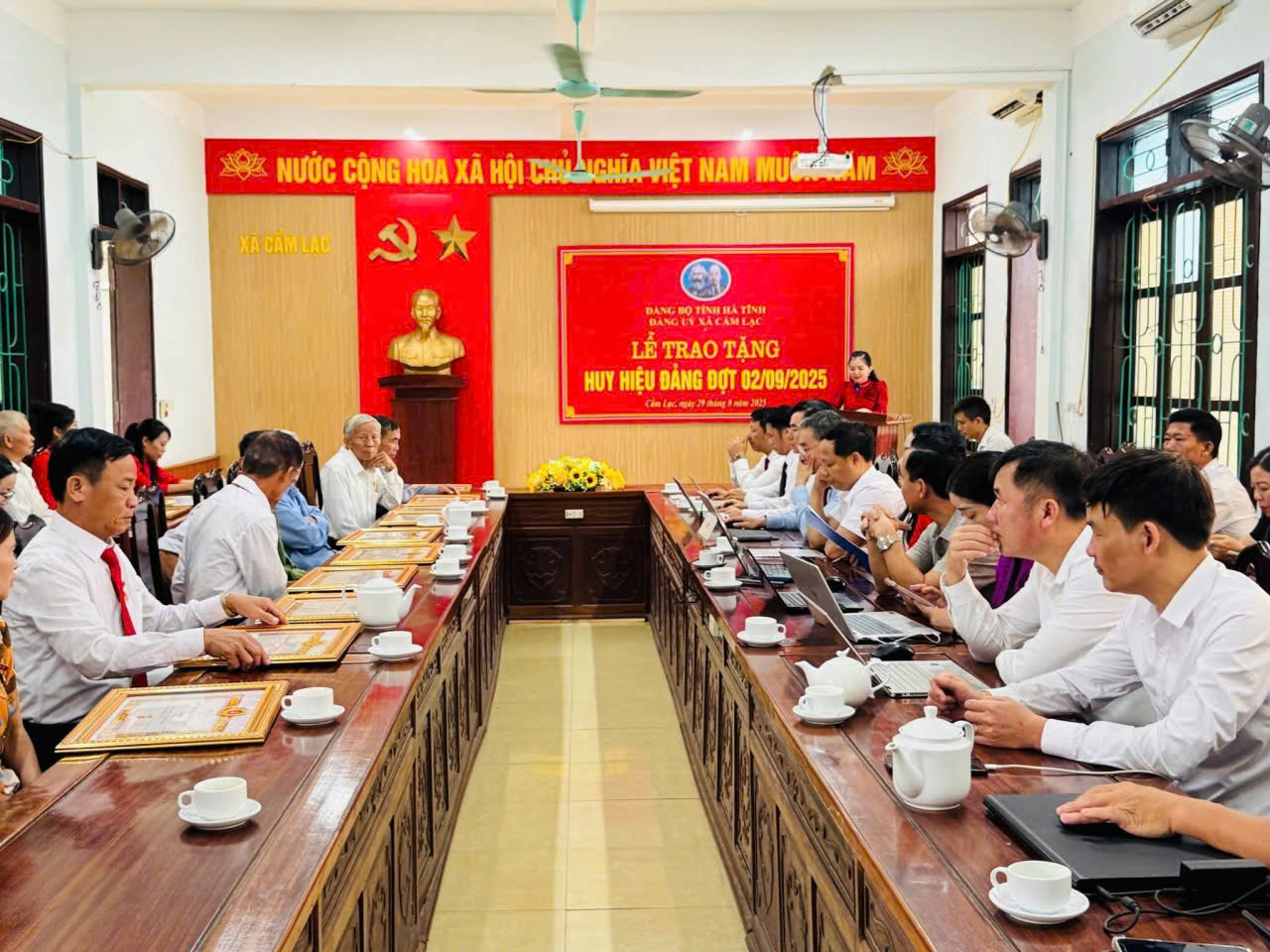 Nhân kỷ niệm 80 năm ngày Quốc khánh nước Cộng hòa xã hội chủ nghĩa Việt Nam (2/9/1945 – 2/9/2025). Sáng ngày 29/8 Đảng bộ xã Cẩm Lạc, tỉnh Hà Tĩnh long trọng tổ chức Lễ trao Huy hiệu Đảng đợt 2/9/2025 cho 23 Đảng viên. Tham dự buổi lễ có đồng chí Nguyễn Như Dũng - TUV, Phó Trưởng ban Thường Trực, Ban tổ chức Tỉnh uỷ; về phía xã có đồng chí Biện Văn Thuyết- Bí thư Đảng ủy, Chủ tịch HĐND xã; đồng chí Nguyễn Siêu Cường - Phó Bí thư Thường trực Đảng ủy; đồng chí Hoàng Thanh Sơn- Phó Bí thư, Chủ tịch UBND xã; các đồng chí Ủy viên Ban Thường vụ Đảng ủy, Ủy viên Ban Chấp hành Đảng bộ xã, đại diện lãnh đạo các ban, phòng, ngành, đoàn thể cấp xã, Bí thư các đảng bộ, chi bộ trực thuộc, Thôn trưởng các thôn trên địa bàn và các đảng viên được trao tặng Huy hiệu Đảng.