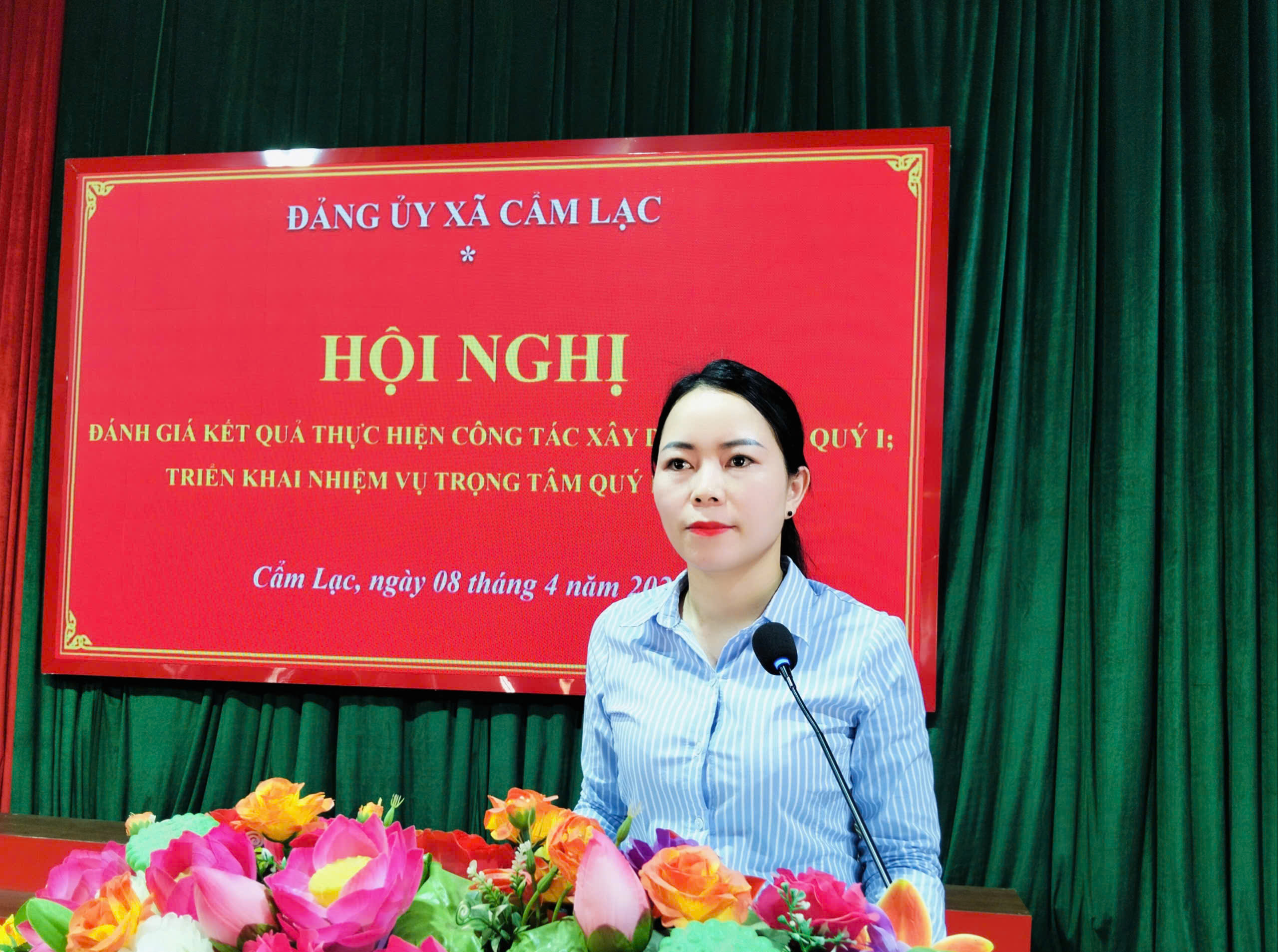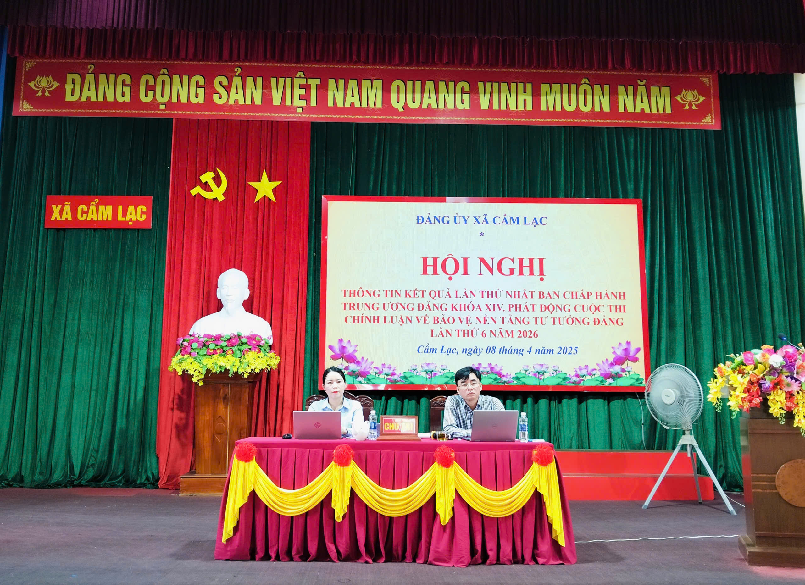 Thực hiện Chương trình công tác tháng 4 năm 2026, sáng ngày 08/4/2026, tại Hội trường cơ quan Đảng ủy, MTTQ xã, Ban Thường vụ Đảng ủy xã Cẩm Lạc đã tổ chức Hội nghị giao ban công tác xây dựng Đảng quý I và Hội nghị Báo cáo viên nhằm đánh giá kết quả thực hiện nhiệm vụ thời gian qua, đồng thời triển khai một số nhiệm vụ trọng tâm trong quý II năm 2026.
