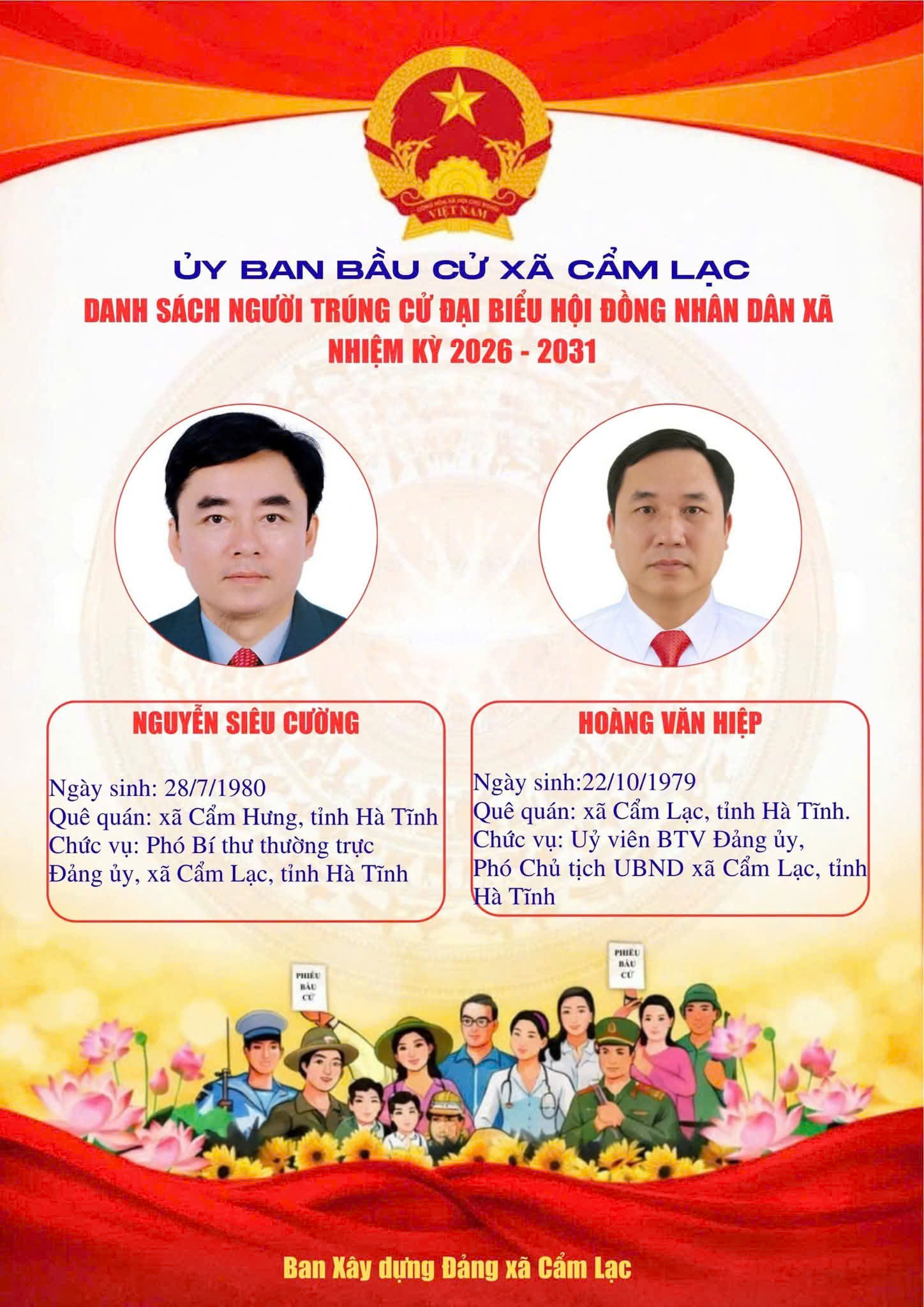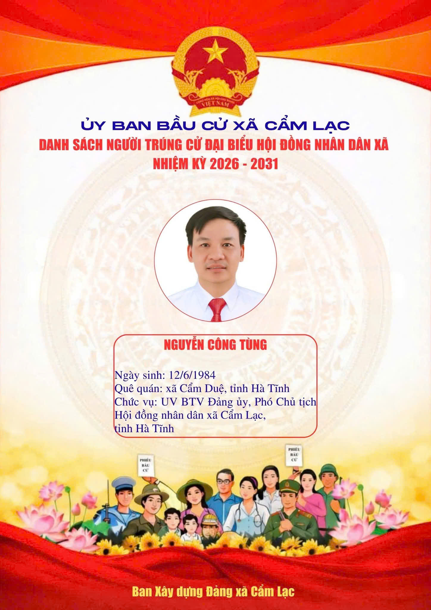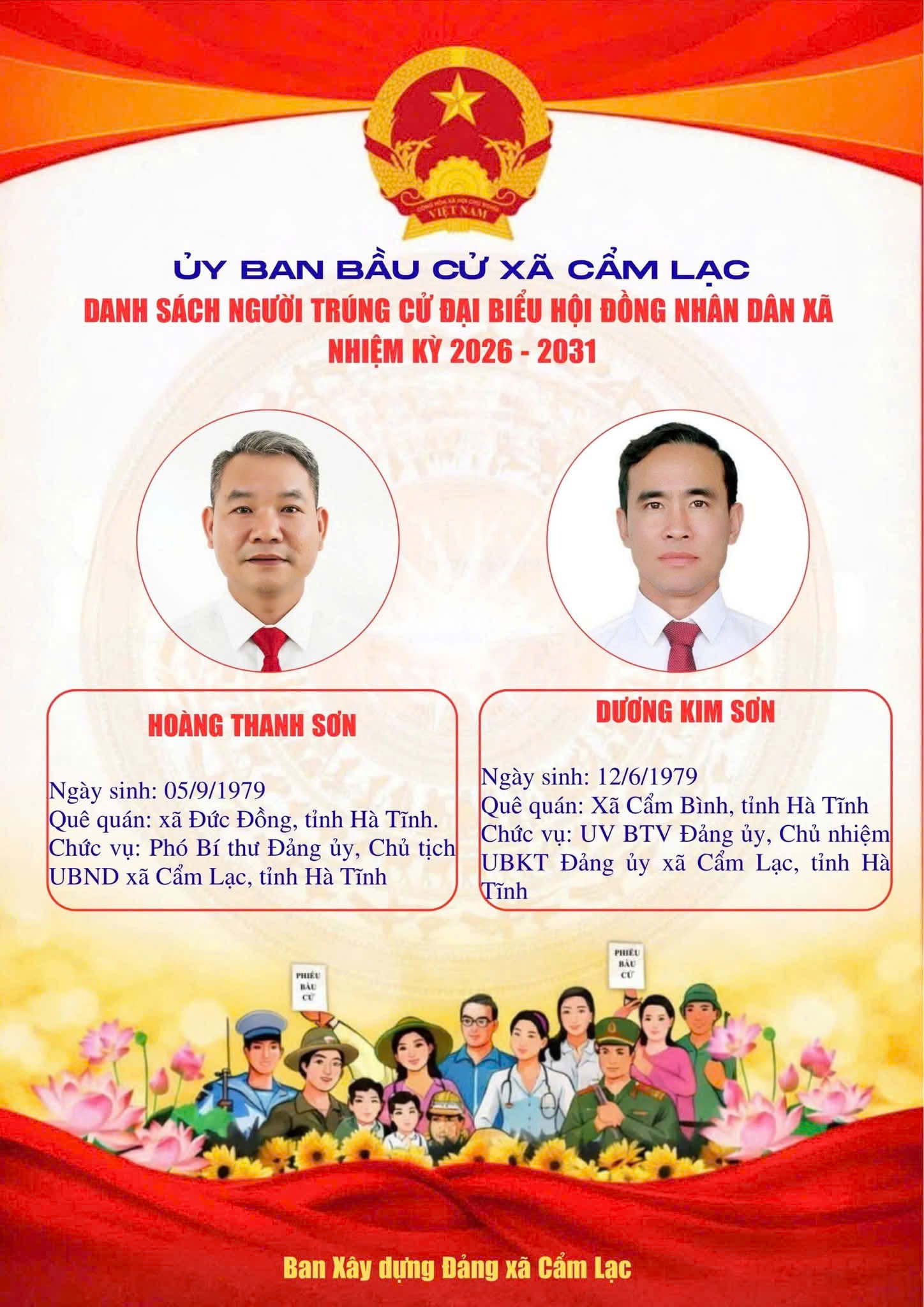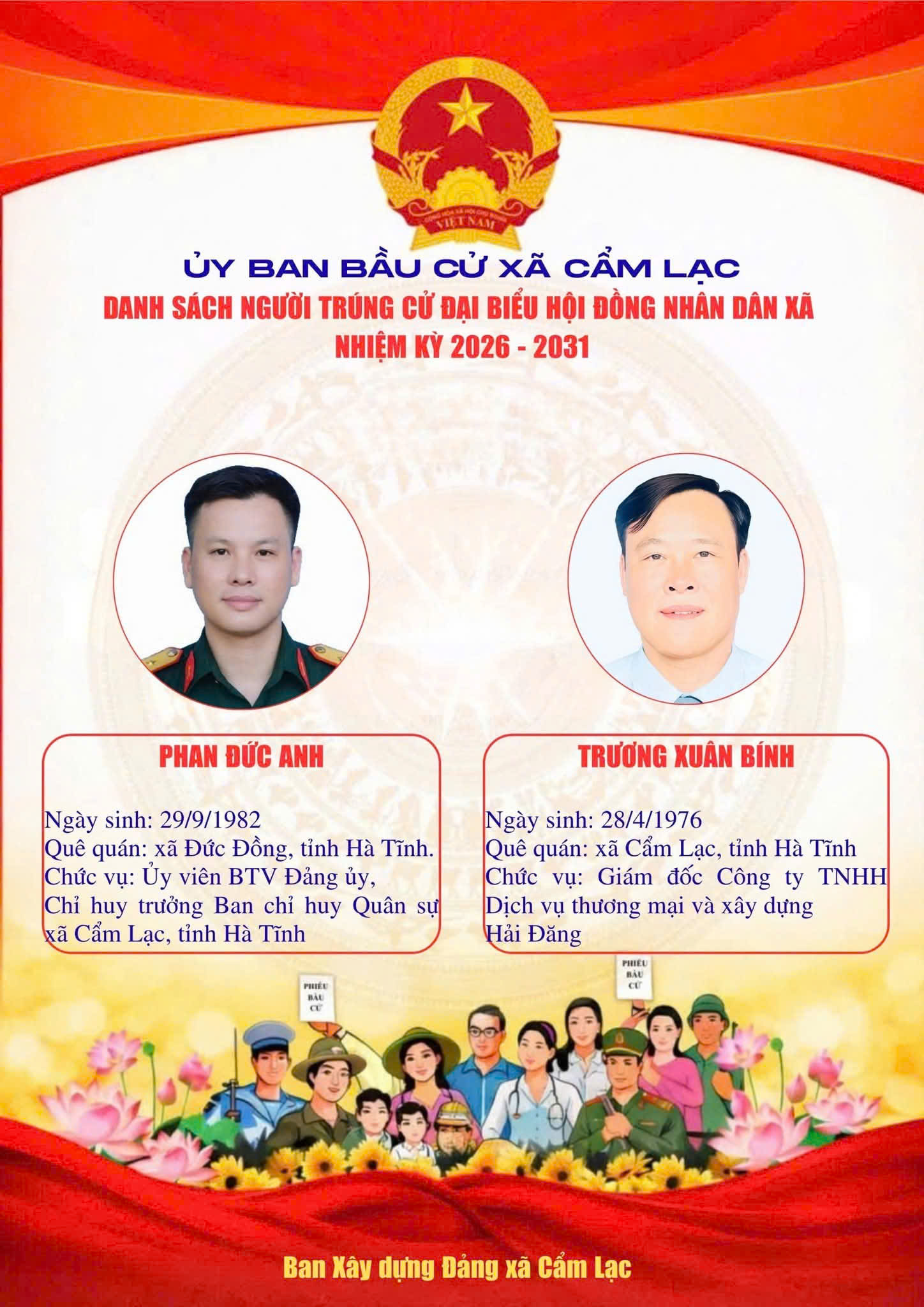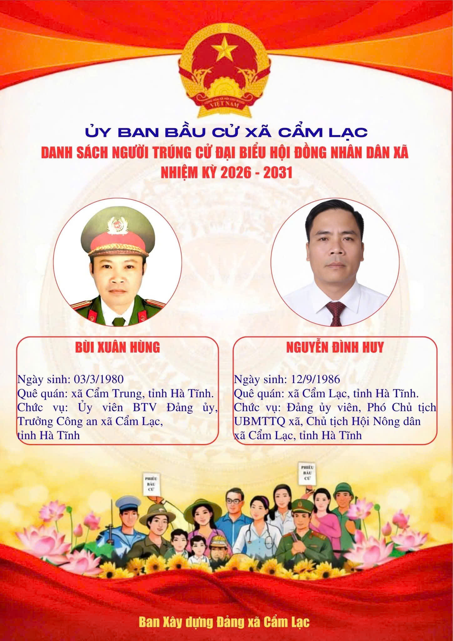 UBBC Xã Cẩm Lạc công bố danh sách người trúng cử Đại biểu HĐND xã Cẩm Lạc nhiệm kỳ 2026 - 2031Uỷ ban Bầu cử xã Cẩm Lạc21/03/2026A -A+Uỷ ban Bầu cử xã Cẩm Lạc21/03/2026A -A+