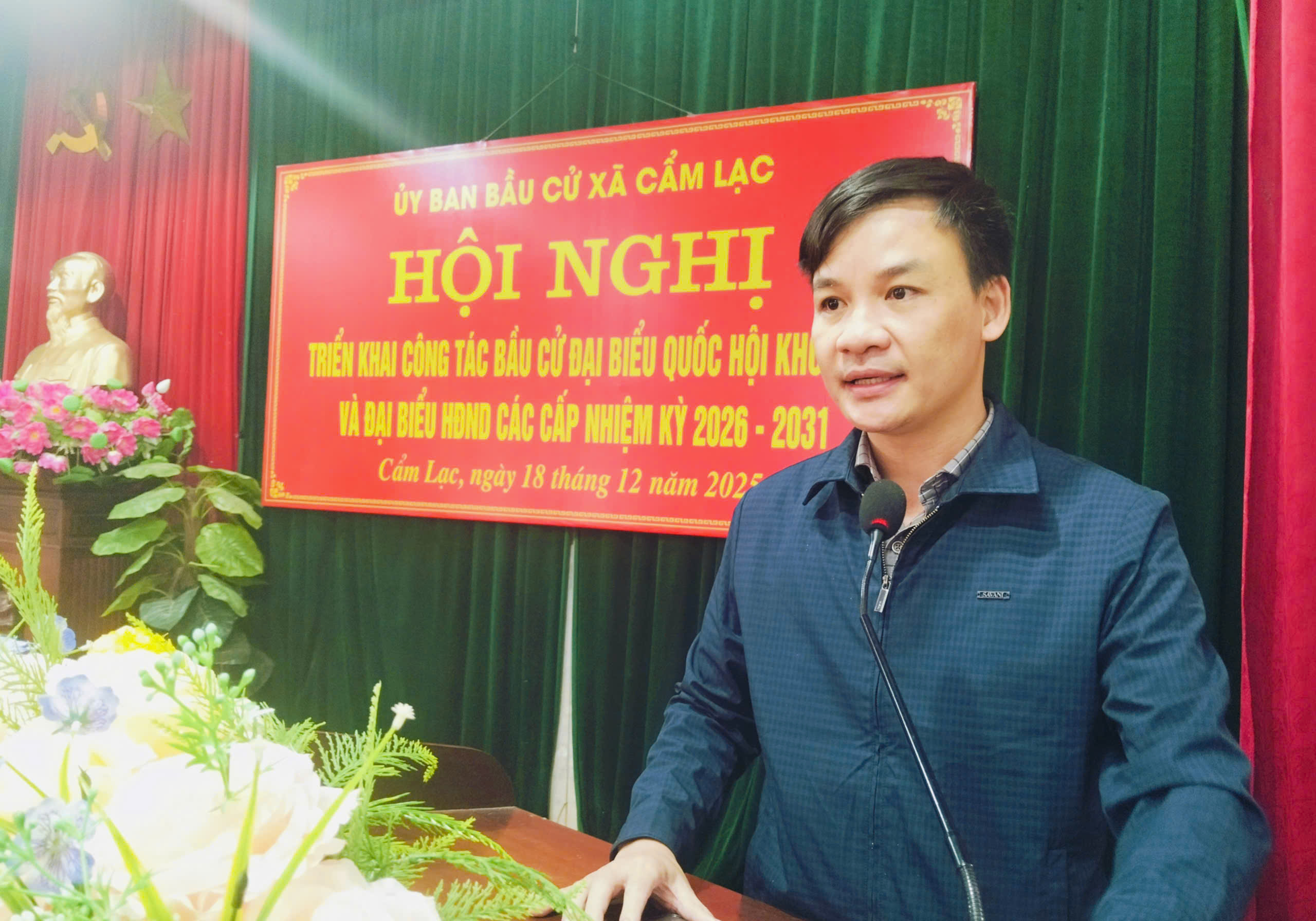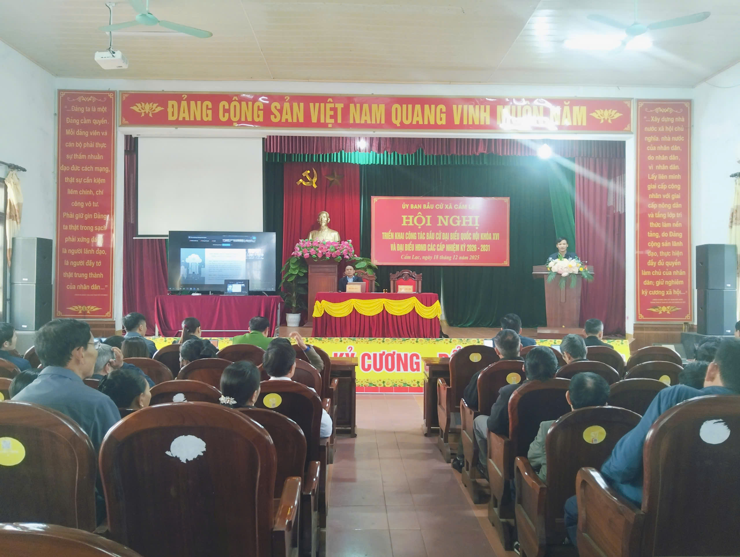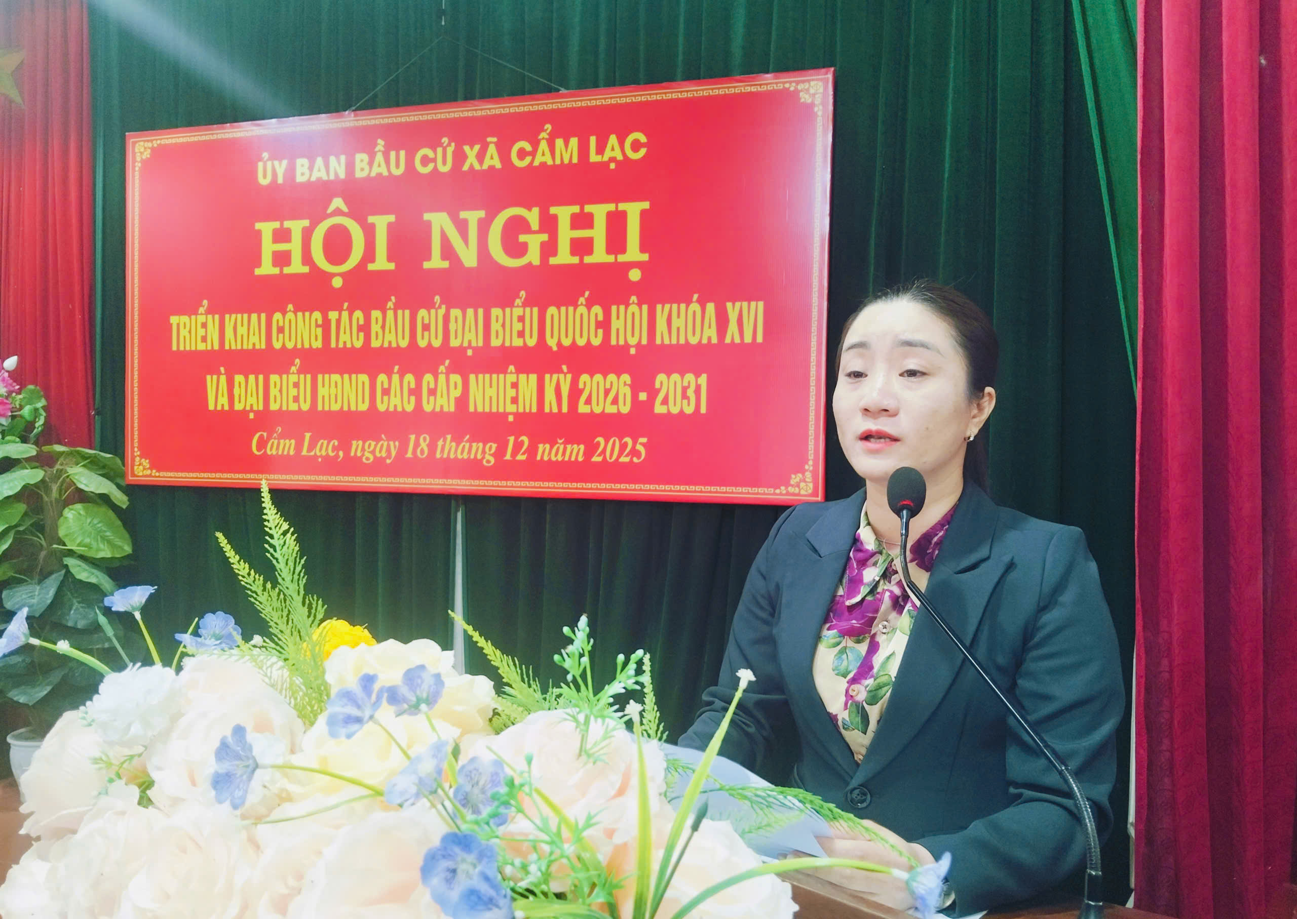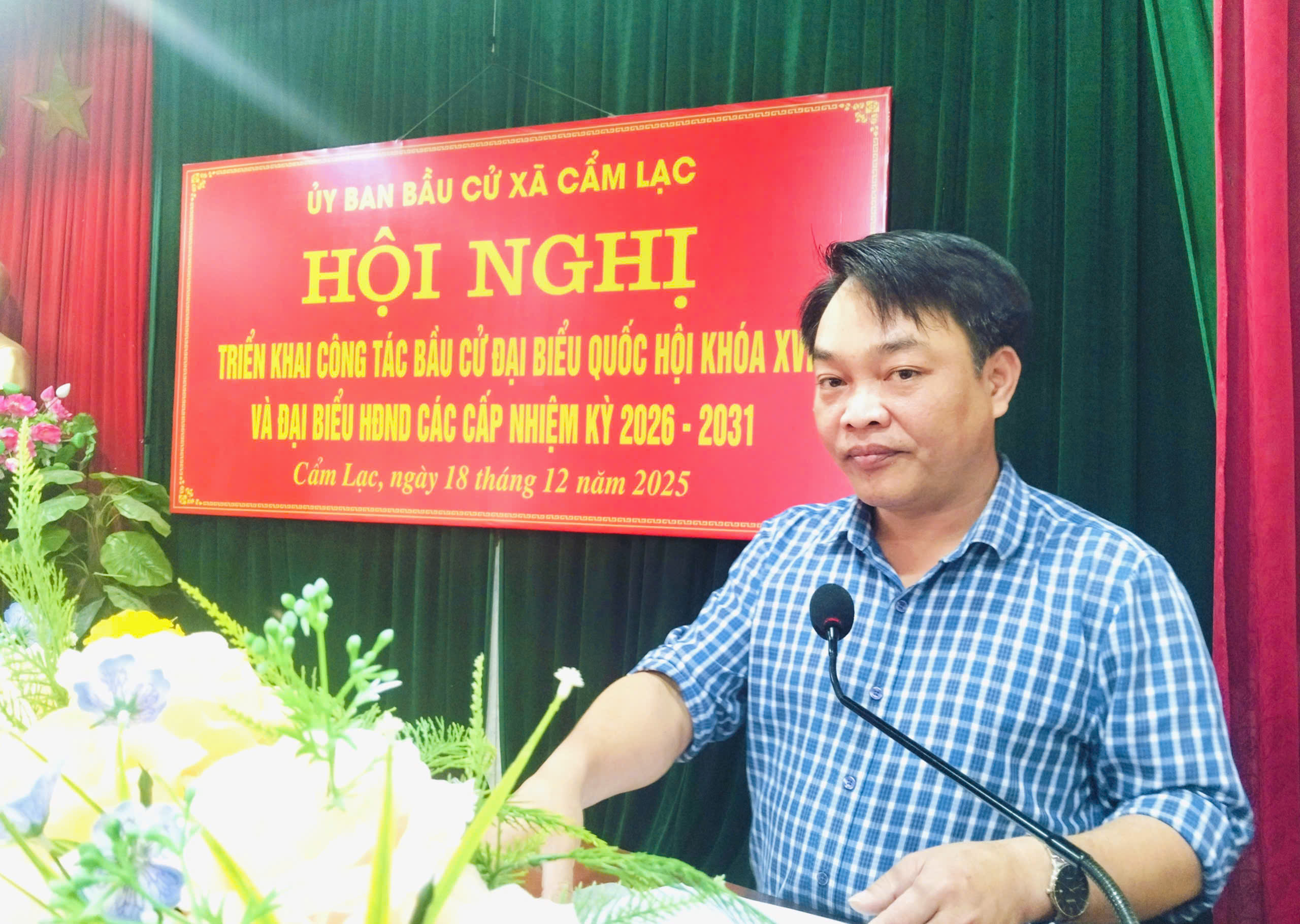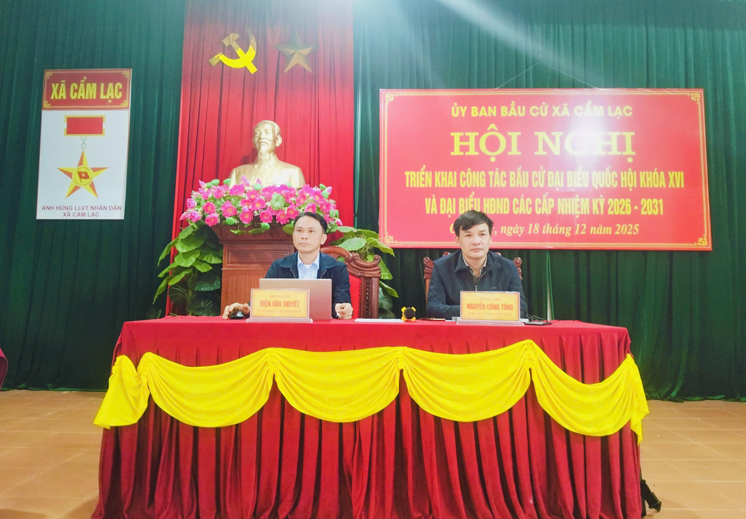 Thực hiện chỉ đạo của cấp trên về công tác chuẩn bị bầu cử. Sáng 18/12/2025, Ủy ban bầu cử xã Cẩm Lạc đã tổ chức hội nghị triển khai công tác bầu cử đại biểu Quốc hội khóa XVI và đại biểu Hội đồng nhân dân các cấp nhiệm kỳ 2026 – 2031. Chủ trì hội nghị có đồng chí Biện Văn Thuyết – Bí thư Đảng ủy, Chủ tịch HĐND, Chủ tịch Uỷ ban Bầu cử; đồng chí Nguyễn Công Tùng – Phó Chủ tịch HĐND, Phó Chủ tịch Uỷ ban Bầu cử. Tham dự hội nghị còn có đồng chí Nguyễn Siêu Cường – Phó Bí thư Thường trực Đảng ủy xã, đại diện Uỷ ban Kiểm tra Đảng; các đồng chí trong BTV Đảng ủy, Thường trực HĐND; các đồng chí thành viên Ban chỉ đạo Bầu cử xã theo quyết định số 23-QĐ/ĐU ngày 01/10/2025 của Đảng ủy xã; các đồng chí thành viên Uỷ ban Bầu cử xã theo quyết định số 786-QĐ/UBND ngày 14/11/2025 của UBND xã; cùng Ban cán sự các thôn trên địa bàn toàn xã, các đồng chí Bí thư, các đồng chí Trưởng ban công tác mặt trận các thôn.