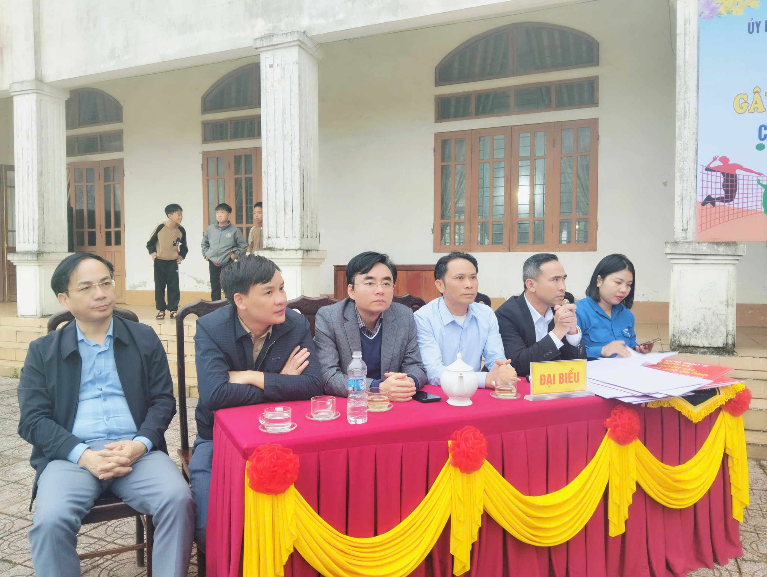 Tham dự có đồng chí Biện Văn Thuyết – Bí thư Đảng ủy, Chủ tịch HĐND xã; đồng chí Nguyễn Siêu Cường – Phó Bí thư Thường trực Đảng ủy xã; đồng chí Hoàng Thanh Sơn - Phó Bí thư Đảng ủy, Chủ tịch UBND xã; thường trực HĐND, lãnh đạo UBND, ban thường trực Ủy ban Mặt trận Tổ quốc Việt Nam xã; các đồng chí ủy viên ban chấp hành Đảng bộ xã; trưởng, phó các ban, phòng, đoàn thể cấp xã; đại diện lãnh đạo Công an xã; toàn thể cán bộ, công chức, viên chức, người lao động thuộc Đảng ủy, HĐND – UBND – UBMTTQ Việt Nam xã và các tổ chức chính trị – xã hội xã. Về phía doanh nghiệp có các đồng chí đại diện hội doanh nghiệp xã; đại diện các cơ quan, tổ chức, cá nhân tham gia ủng hộ quỹ thiện nguyện “Tết vì người nghèo”. Ở thôn có các đồng chí bí thư chi bộ, trưởng thôn, trưởng ban công tác mặt trận thôn; trưởng đoàn và các vận động viên tham gia thi đấu tại giải, và toàn thể cổ động viên và bà con nhân dân trên toàn xã.