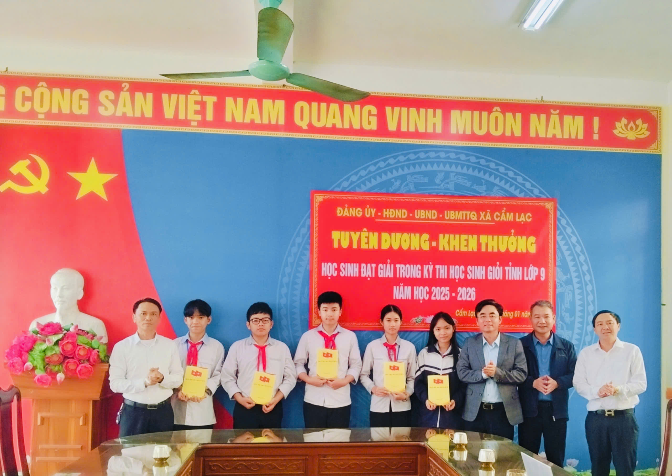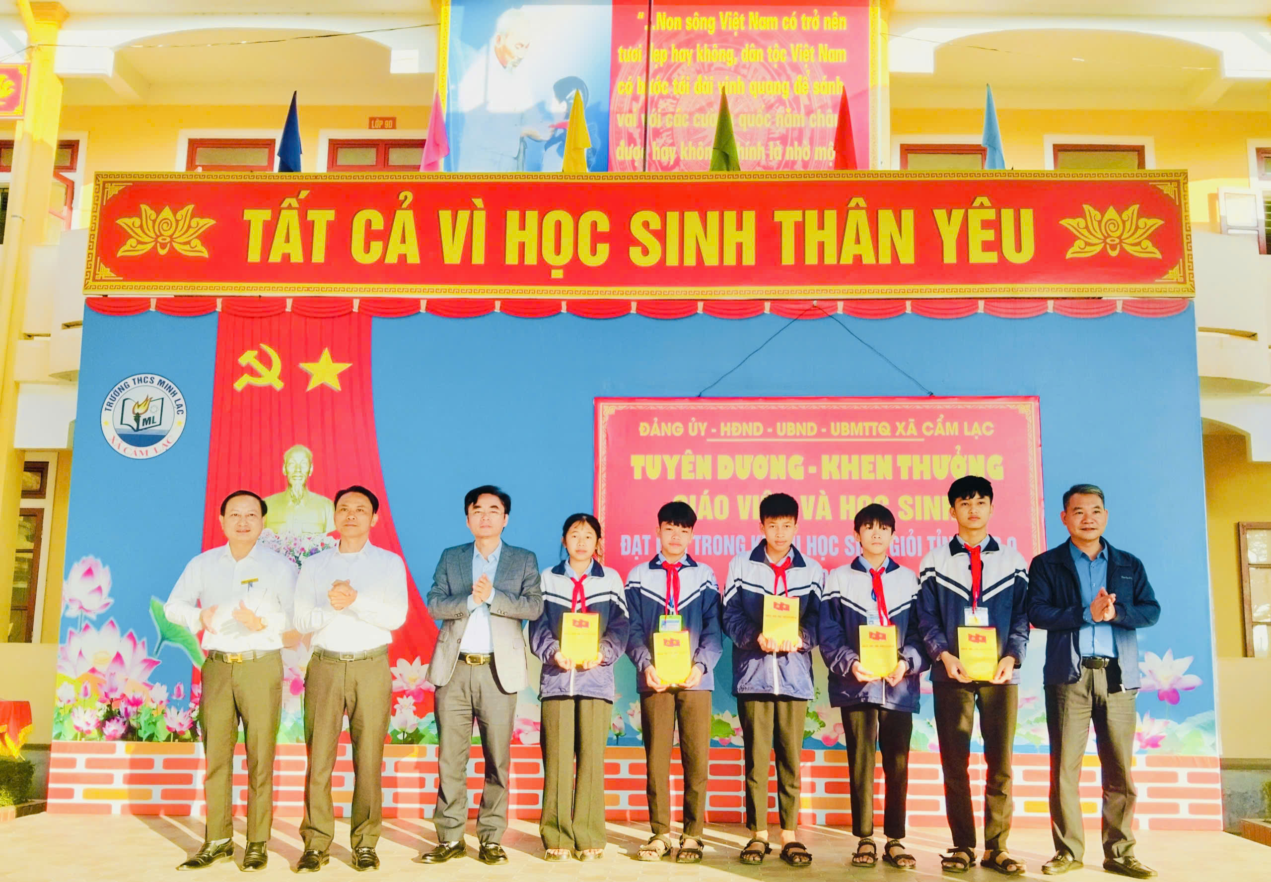 Nhân dịp này, xã Cẩm Lạc chúc mừng và biểu dương 05 thầy, cô giáo trực tiếp tham gia bồi dưỡng đội tuyển học sinh giỏi, có học sinh đạt giải cấp tỉnh; ghi nhận sự tâm huyết, trách nhiệm và những đóng góp quan trọng của đội ngũ giáo viên đối với công tác giáo dục mũi nhọn của địa phương.