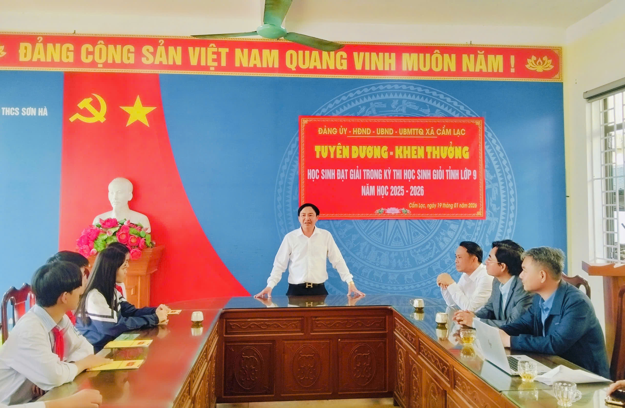 Cũng trong dịp này, tại điểm trường THCS Sơn Hà, xã Cẩm Lạc đã tuyên dương, khen thưởng 05 em học sinh là con em trên địa bàn xã Cẩm Lạc đang học tập tại điểm trường THCS Sơn Hà đóng trên địa bàn xã Cẩm Lạc đã có nhiều cố gắng trong học tập, rèn luyện và đạt thành tích cao trong Kỳ thi học sinh giỏi tỉnh năm học 2025 – 2026.